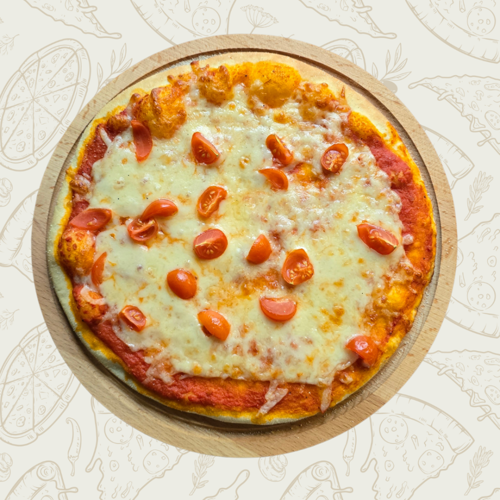 Моцарелла, сулугуни, томатная основа, прованские травы, возможно добавление черри.